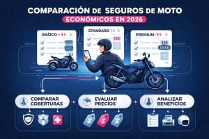 Descubre cómo encontrar los seguros más baratos de moto en 2026. Comparativas, coberturas esenciales y consejos expertos para ahorrar sin renunciar a protección.