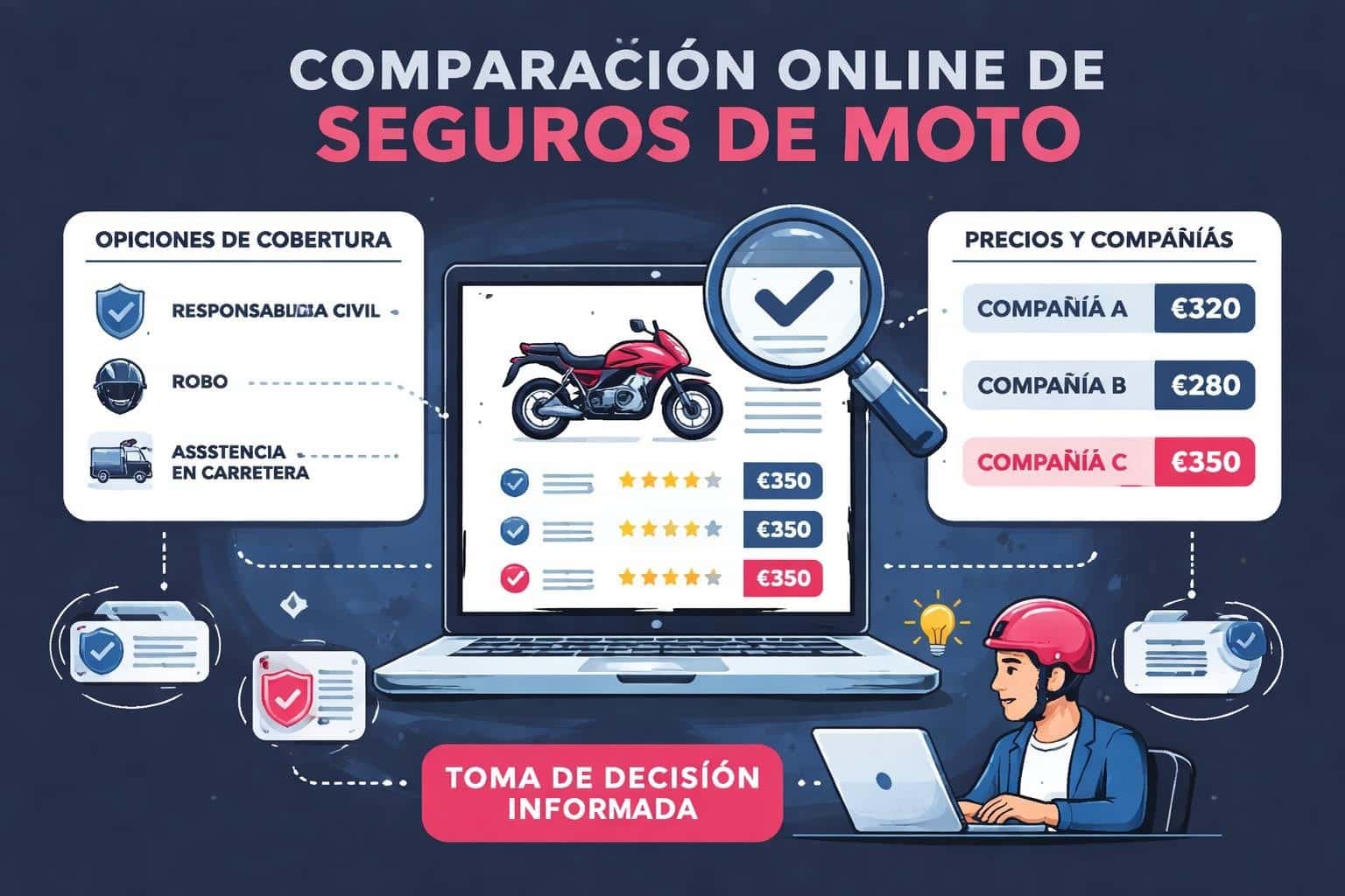 Motopoliza.com te permite acceder a múltiples opciones en minutos, analizar coberturas con transparencia y tomar decisiones informadas que protegen tanto tu pasión por las dos ruedas como tu economía. La clave está en utilizar estas herramientas con criterio, verificando siempre los detalles y priorizando la calidad de cobertura sobre el precio más bajo. En Motopoliza.com encontrarás el comparador especializado en seguros de moto más completo del mercado, con acceso a más de 25 aseguradoras y la experiencia de más de 15 años ayudando a motociclistas a encontrar la póliza perfecta para cada necesidad.